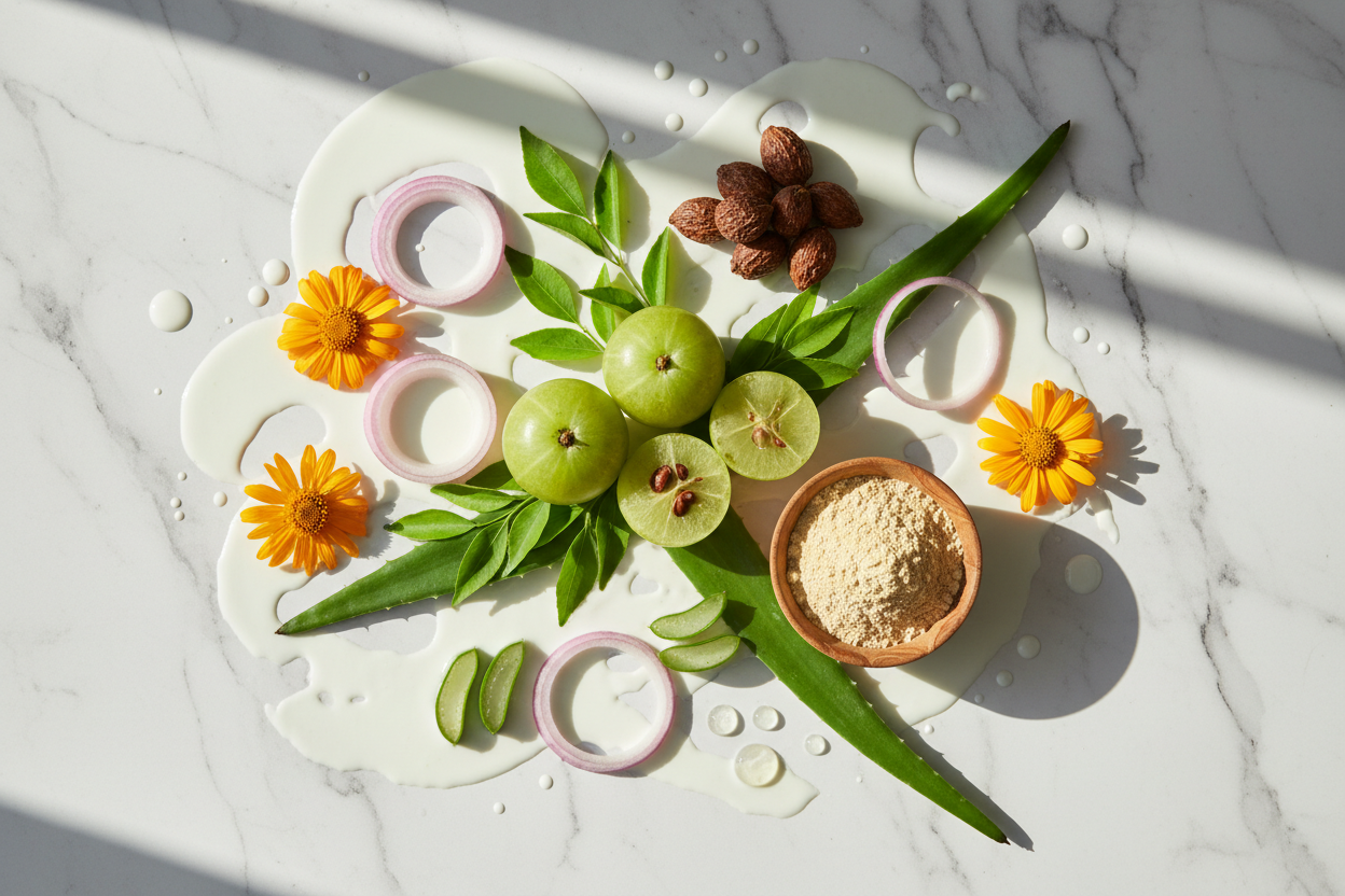 🌿 Onion: Strengthens hair follicles and reduces hair loss.